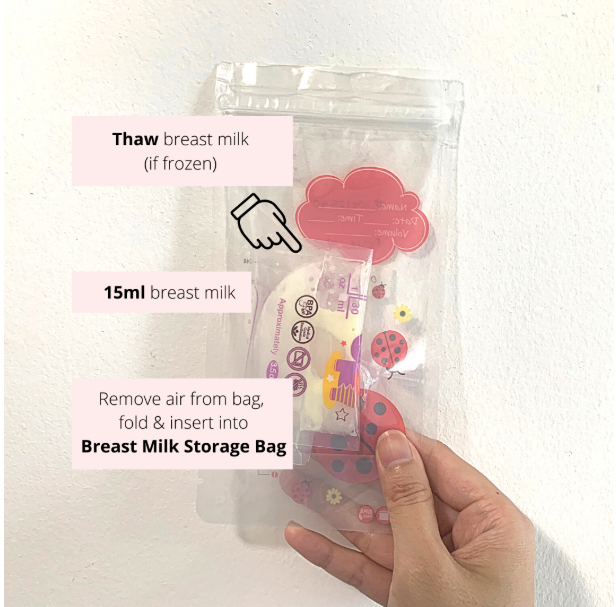 - Container: Use a breast milk storage bag or a clean ziplock bag.