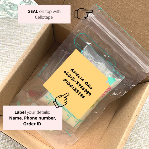 - Shipping: Place the labeled, double-bagged milk inside a small box or a padded envelope for protection during shipping.